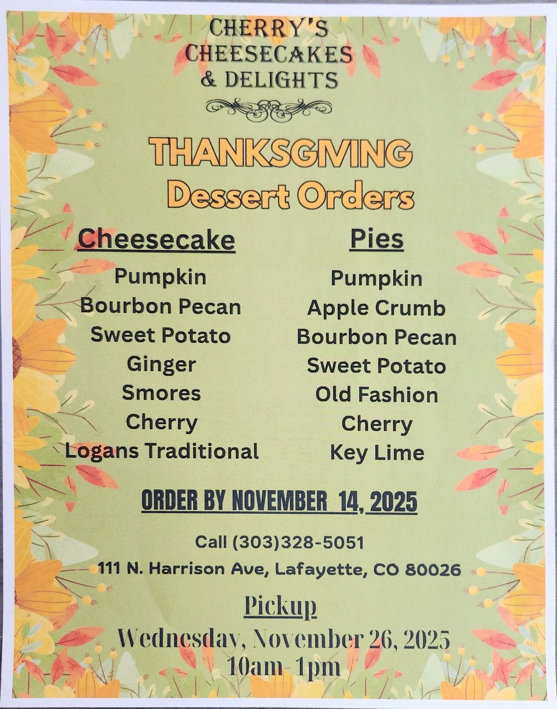 Order Desserts by November 14th and pickup is by Wednesday November 26th.